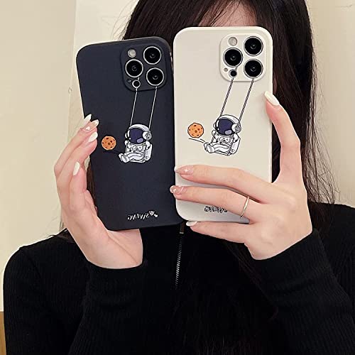 iPhone 14 ケース カバー 可愛い 宇宙飛行士 ぶらんこ swing 黒色 ブラック アニメ 宇宙 人気 おしゃれ お洒落 おもしろ かわいい 薄型 スリム 耐衝撃 軽量 惑星 シリコン ソフトケース 携帯ケース (iPhone14,SW 黒) 送料無料