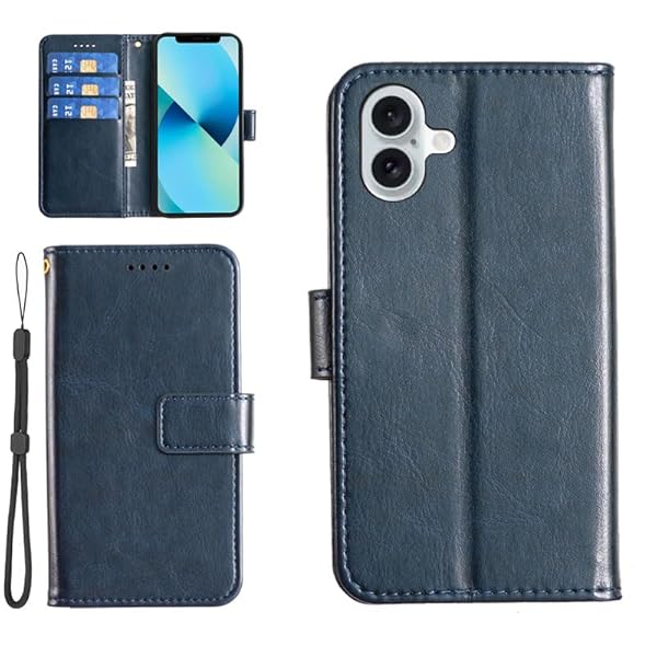 iPhone16 ケース 手帳型 カード収納 銀行カード 現金 スタンド 防塵 防水 スマホケース 全面保護 耐摩擦 手触りが良い 耐衝撃 高級合皮 上質 人気 紺青