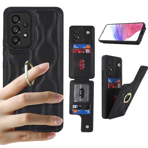Galaxy A53 5G SC-53C SCG15 手帳型 ケース背面ポケット付きGalaxy A53 財布型ケースGalaxy A53 カードポケットGalaxy A53 手帳型 ケース[上下開]Galaxy A53 SC-53C 手帳型ケースSCG15 ケースGalaxy A53 case カード収納 360°回転リング 横置 磁気機能- ブラック