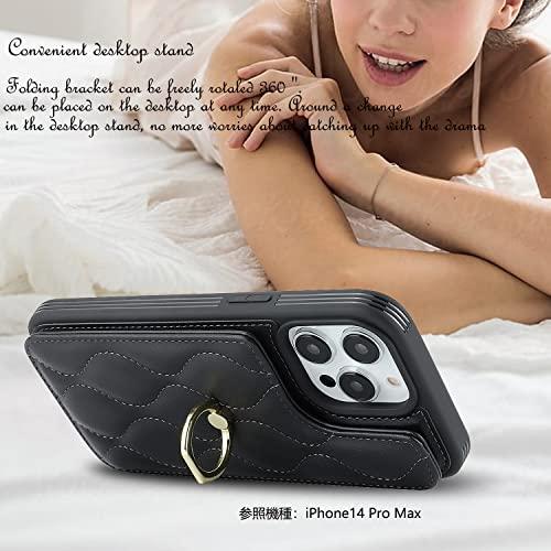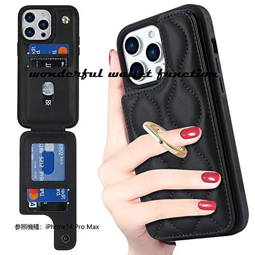 Galaxy A53 5G SC-53C SCG15 ケース リング 手帳型 財布型 上下開き 背面ポケット Qi急速充電対応 カード収納 人気 おしゃれ スマホケース 360°回転リング- ブラック