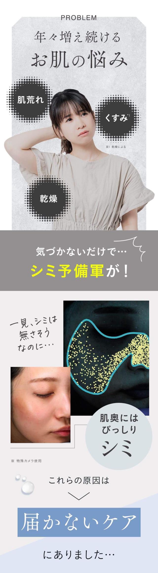 | その他成分 | 1,3-ブチレングリコール、濃グリセリン、1,2-ペンタンジオール、ポリオキシエチレングリセリン(26E.O.)、エリスリトール、ポリオキシプロピレンジグリセリルエーテル、ポリオキシブチレンポリオキシエチレンポリオキシプロピレングリセリルエーテル(3B.O.)(8E.O.)(5P.O.)、ヒアルロン酸ナトリウム(2)、フェノキシエタノール、ジプロピレングリコール、シロキクラゲ多糖体、加水分解ヒアルロン酸、クエン酸、クエン酸ナトリウム、水酸化カリウム、シュガースクワラン、水素添加大豆リン脂質、ポリオキシエチレンポリオキシプロピレンデシルテトラデシルエーテル(20E.O.)(6P.O.)、グリセリンモノ2-エチルヘキシルエーテル、エデト酸二ナトリウム、異性化糖、アスコルビン酸、加水分解コンキオリン液、セイヨウナシ果汁発酵液、チンピエキス、水溶性コラーゲン液(4) |