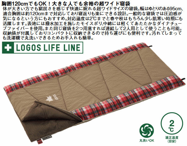 ロゴス 寝袋 シュラフ 封筒型寝袋 封筒型シュラフ 超ワイド寝袋 幅95cm 丸洗いOK 収納袋付き 連結可能 寝具 アウトドア キャンプ LOGOS 丸洗いBIGシュラフ・2 72602050