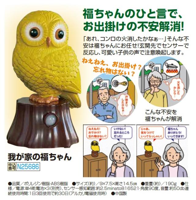 我が家の福ちゃん ふくろう 置き物 フクロウ 梟 置物 喋る 黄色 イエロー かわいい 鳥 センサー edo p25686