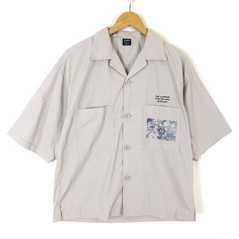 【中古】ジーユー GU シャツ オープンカラー keina suda コラボ フラワー フォト プリント 刺繍 半袖 S グレージュ