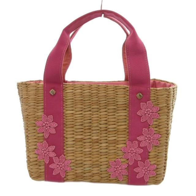 【中古】トッカ TOCCA かごバッグ 編み込み フラワー刺繍 ピンク /JS