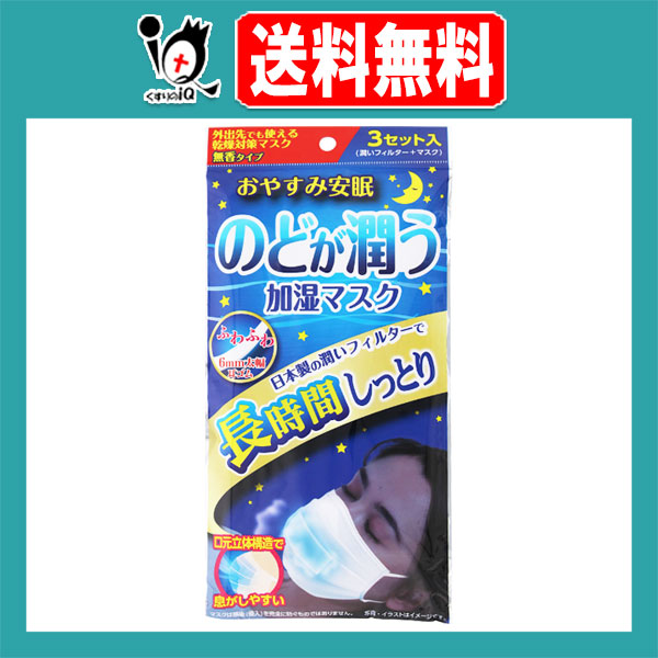のどが潤う加湿マスク 3セット分(1袋)【奥田薬品】おやすみ安眠 無香タイプ ふつうサイズ 日本製の潤いフィルターで長時間しっとり ふわふわ太幅耳ゴム 外出先でも使える乾燥対策マスク 不織布マスク 使い捨てマスク