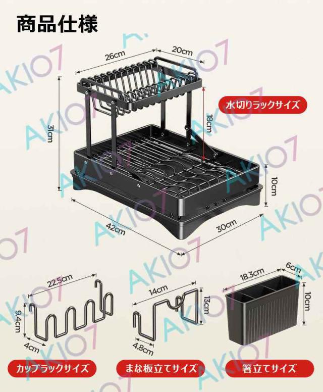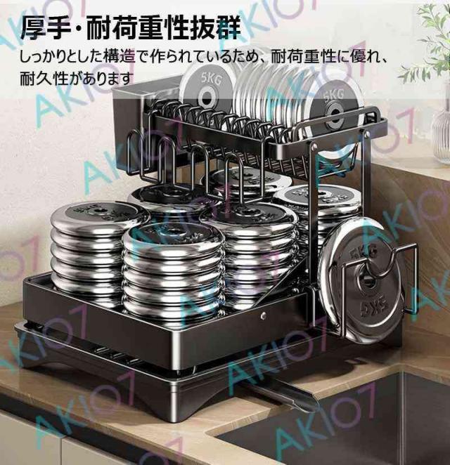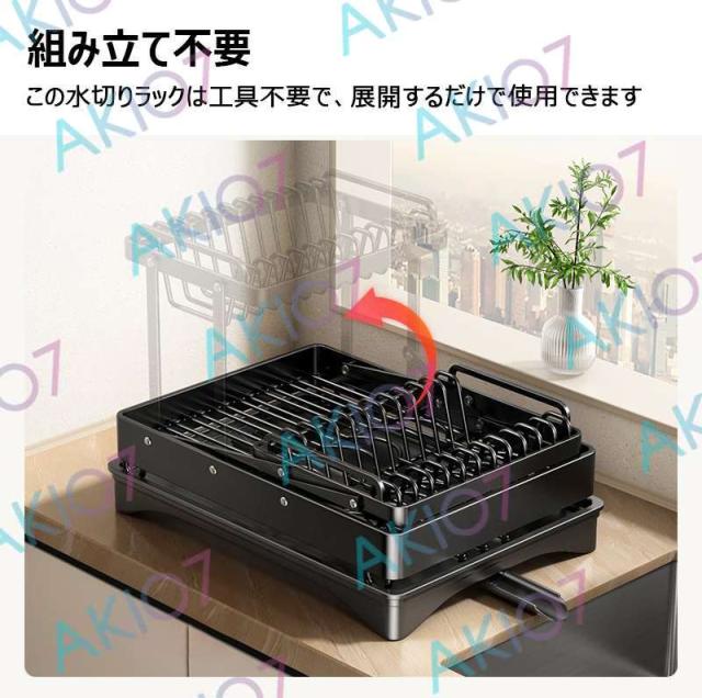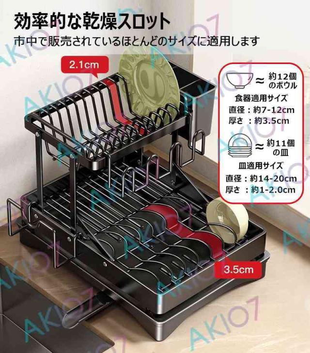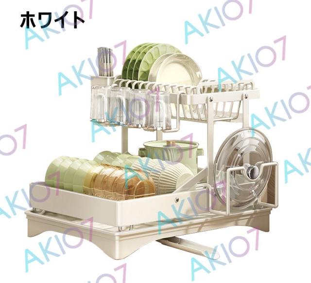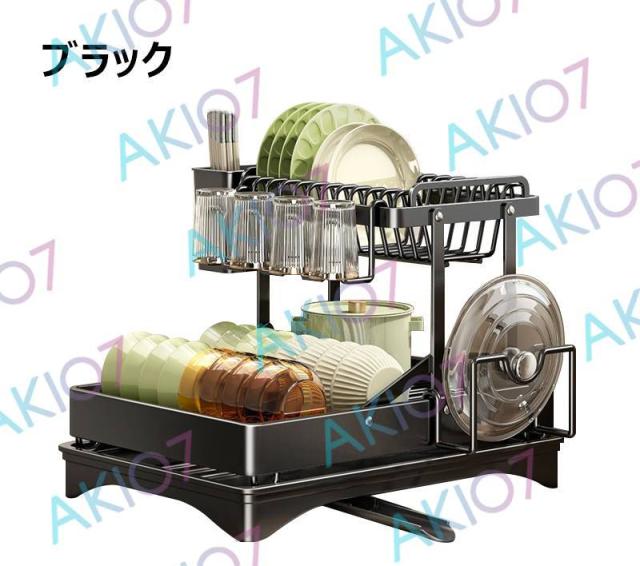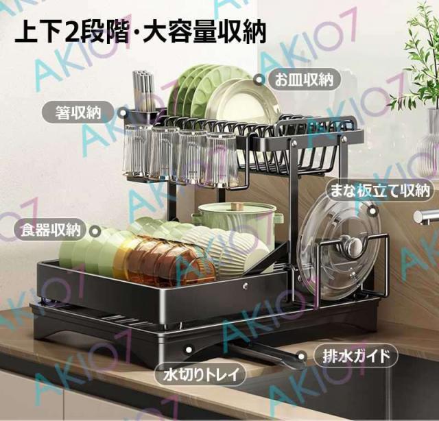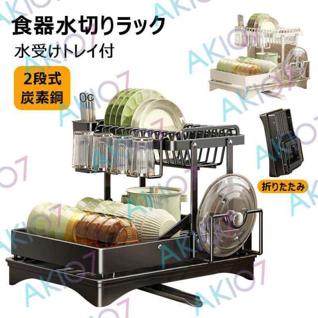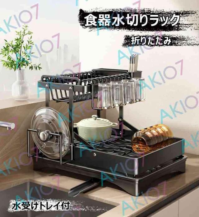 【折りたたみ・2段式】水切りラック 食器水切りカゴ 水受けトレイ付 食器乾燥ラック 自動排水 錆びにくい 大容量 キッチン収納 水が流れる 台所 ディッシュラック 皿立て 箸収納 まな板立て カップ収納 多機能 簡単組立
