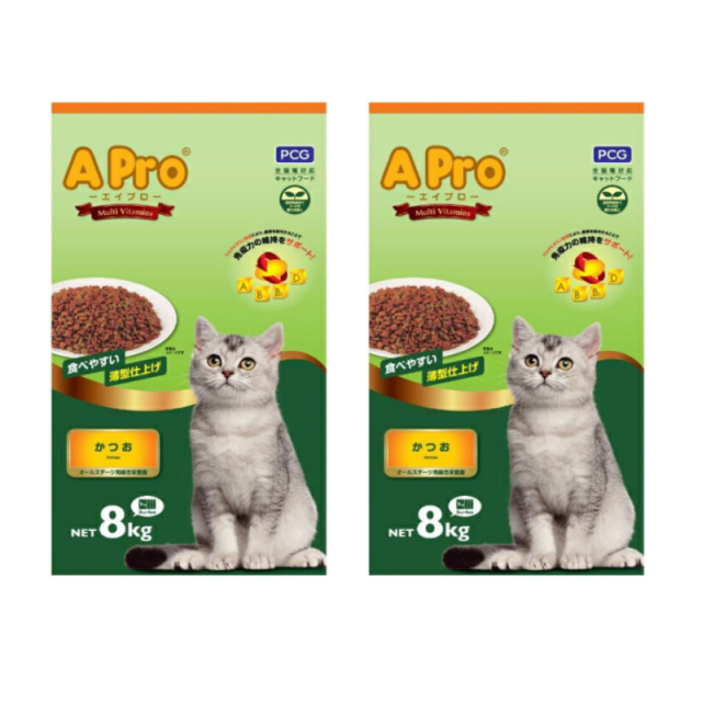お財布にやさしい、APro。 愛猫も大満足。オールステージ用総合栄養食です。まぐろ、お魚ミックス、お魚とお肉ミックス、お魚・お肉・野菜ミックス の4種類からお選びいただけます。 賞味期限:製造より18ヵ月
