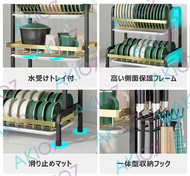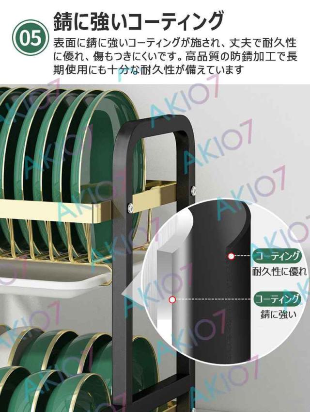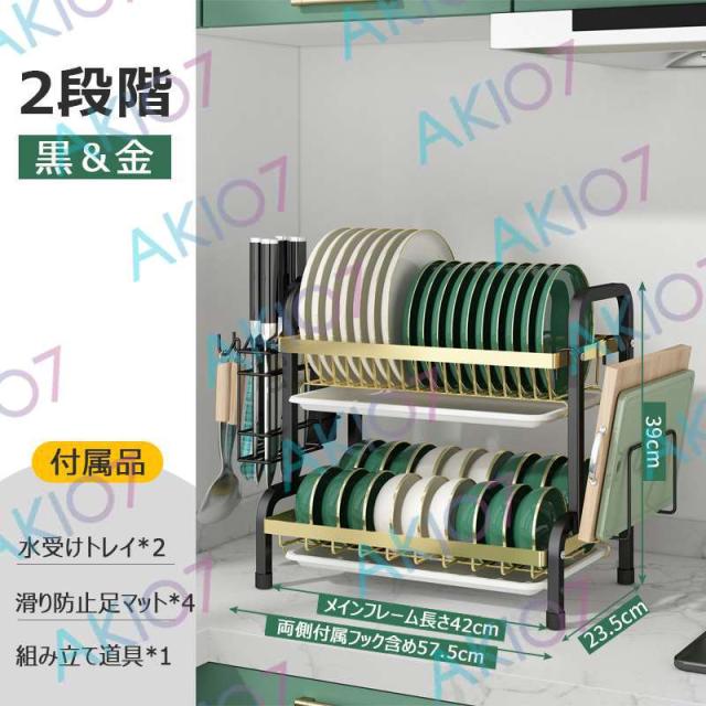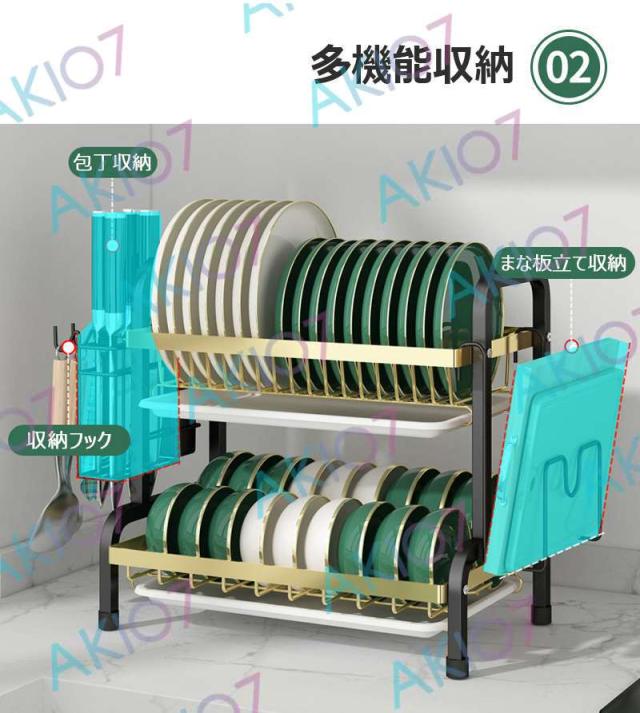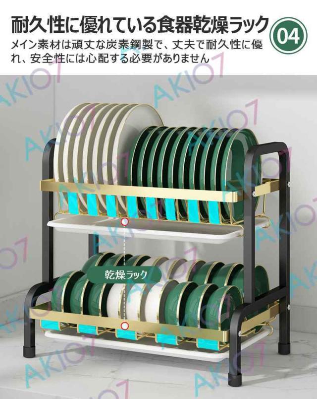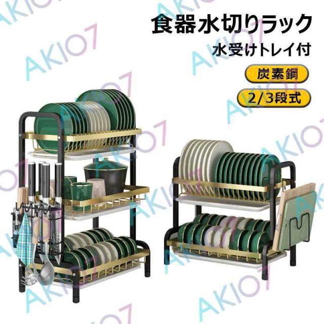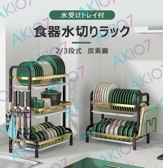 【2/3段式・炭素鋼】水切りラック 食器水切りカゴ 水受けトレイ付 食器乾燥ラック 錆びにくい 大容量 キッチン収納 水受けトレイ付 台所 ディッシュラック 皿立て 包丁収納 まな板立て 茶器/カップ収納 多機能 簡単組立