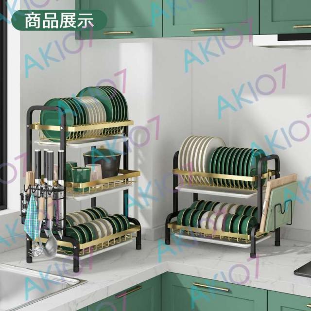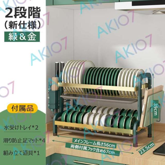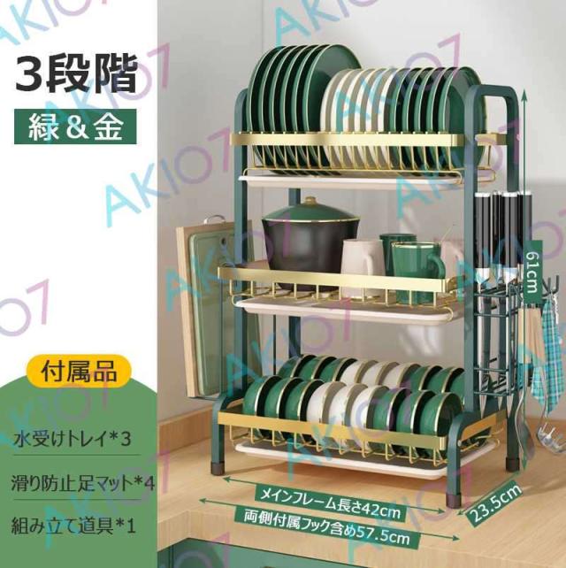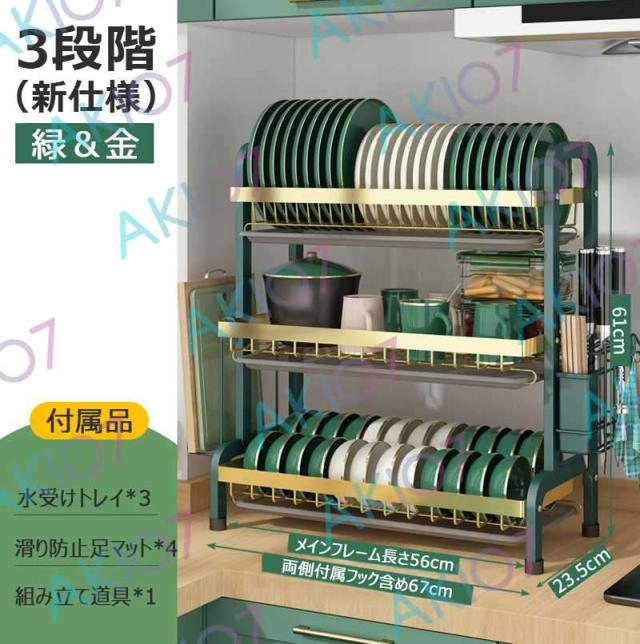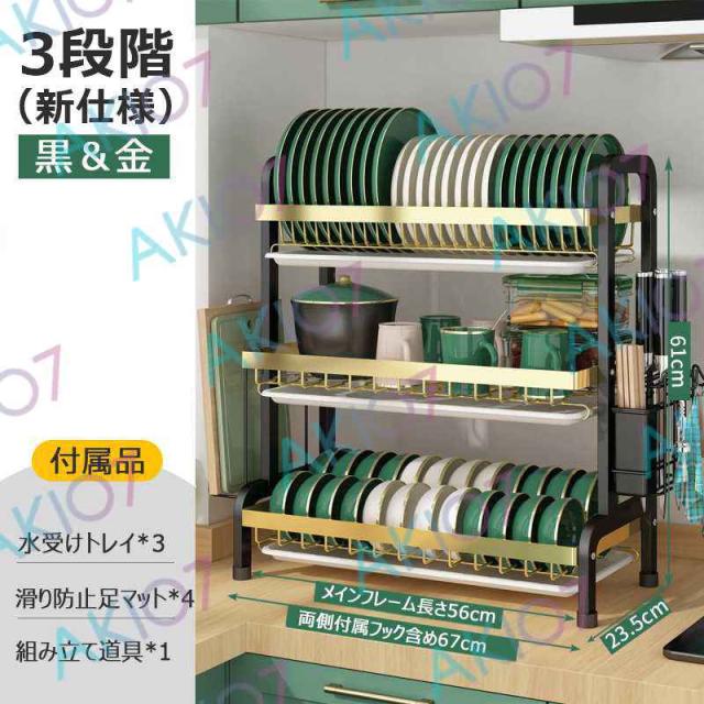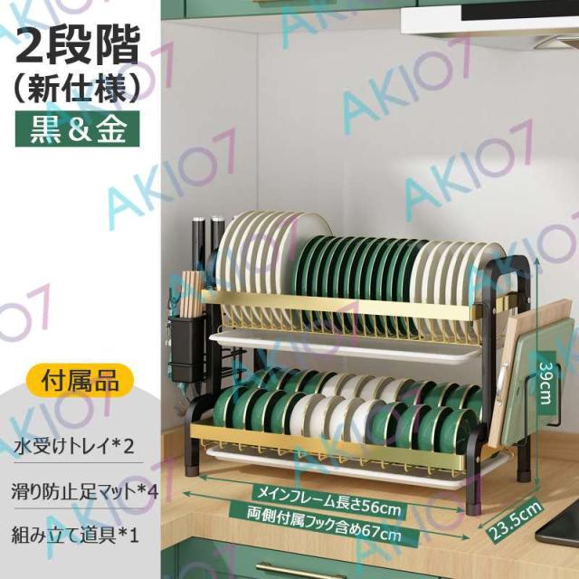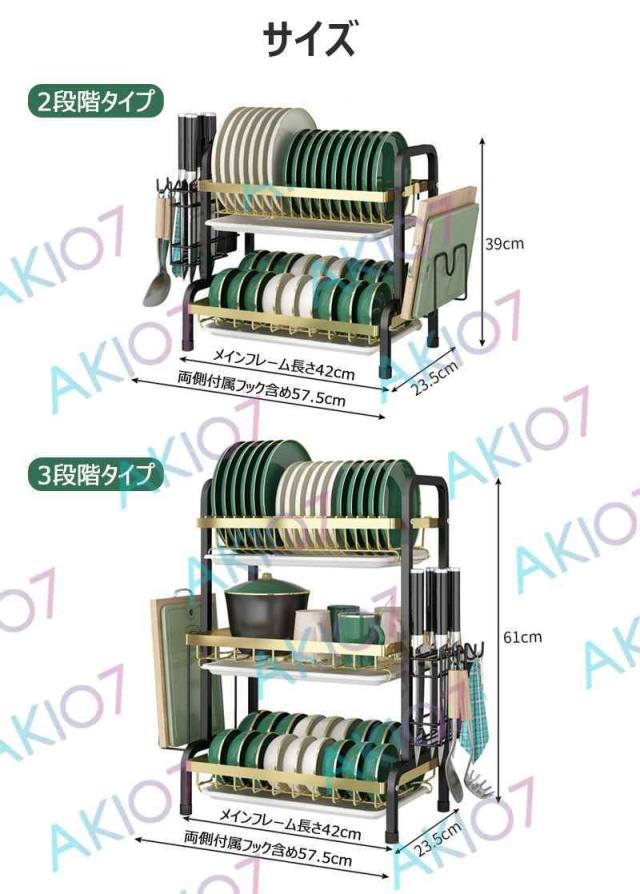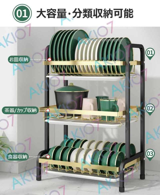 【2/3段式・炭素鋼】水切りラック 食器水切りカゴ 水受けトレイ付 食器乾燥ラック 錆びにくい 大容量 キッチン収納 水受けトレイ付 台所 ディッシュラック 皿立て 包丁収納 まな板立て 茶器/カップ収納 多機能 簡単組立