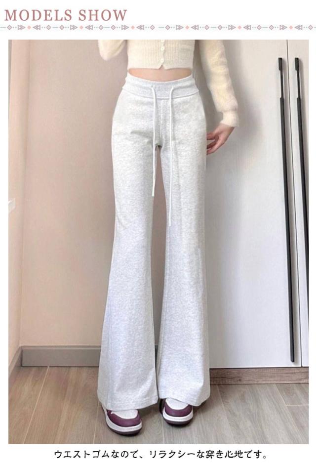 ストレッチ ロング スウェット イージーパンツ フレアパンツ 長め丈 脚長効果 ベルボトム ベルボトムパンツ 秋冬 パンツ シンプル ストレッチ 春 ウエストゴム 美脚パンツ 着?せ 春秋 レディース 春 秋 冬 ファッション フレアパンツ ボトムス 無地