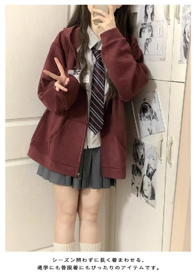 春服 秋服 パーカー 中学生 制服 スクールパーカー トップス スクール 春 秋 女子 学生服 学生パーカー レディース 長袖 高校生 裏起毛なし スクールパーカー ゆったり カジュアル シンプル 通学 学生 ガールズ アウター