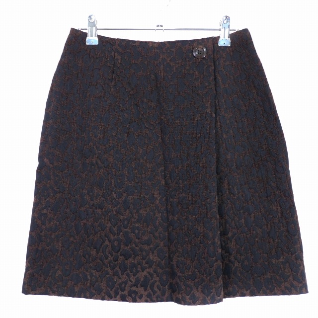 【中古】オペークドットクリップ ヒョウ柄 台形スカート ミニ タック バックファスナー レオパード M 茶 レディース