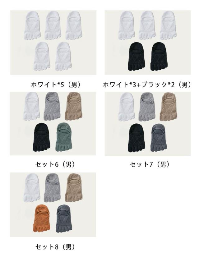 | 色 | ブラック*5(女) ホワイト*5(女) グレー*3+ピンク*2(女) セット4(女) セット5(女) ホワイト*5(男) ホワイト*3+ブラック*2(男) セット6(男) セット7(男) セット8(男) |