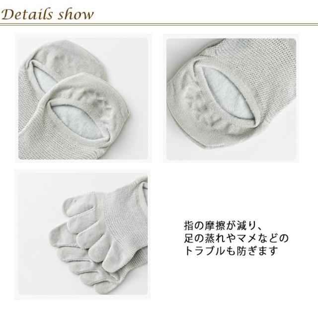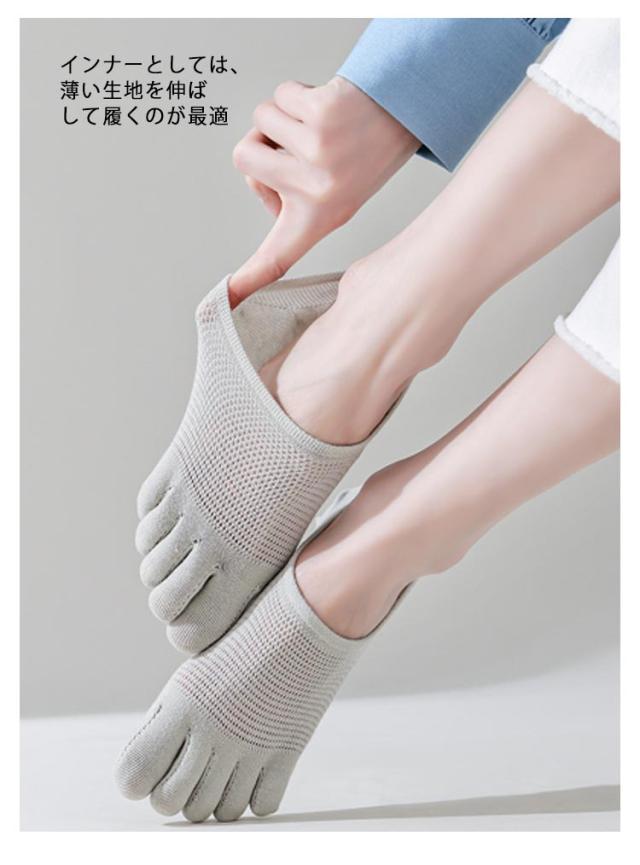| 綿95% メッシュ 通気性 5足セット 履き心地も柔らかく、肌への負担も少ない靴下 指が1本ずつ分かれているので、踏ん張りが効き指がしっかりと地面をつかみます 指の摩擦が減り、足の蒸れやマメなどのトラブルも防ぎます インナーとしては、薄い生地を伸ばして履くのが最適 | |