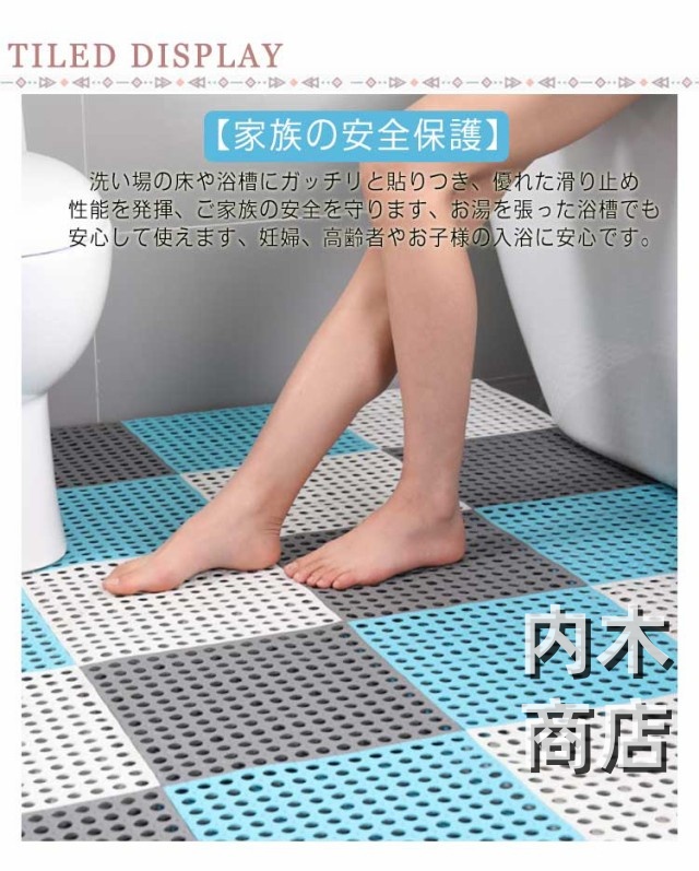 | 【24枚セット】【お風呂 滑り止めマット】【30cm×30cm】【6color】 【家族の安全保護】洗い場の床や浴槽にガッチリと貼りつき、優れた滑り止め性能を発揮、ご家族の安全を守ります、お湯を張った浴槽でも安心して使えます、妊婦、高齢者やお子様の入浴に安心です。 【防カビ・防菌】穴が多くあるので水切れがよく、乾きが速いです。優れた防カビ・抗菌効果、超耐久性があり、常に清潔で安心してご利用頂けます。 【良好な排水】汚れたら洗い流すだけ!水でよく洗い、風通しの良い直射日光の当たらない場所で陰干ししてください。使わない時はクルっと巻いておけばヨシ、移動も楽ちん。 【冷たくない、防カビ】表面と裏面がすべり止め効果の高いだけでなく、お尻と足に優しです。冬でも冷たい天気でも足元は冷たくありません。 【広い適用範囲・DIYマット】浴室を敷き詰めると滑り止め効果抜群!浴室だけでなく、キッチン、玄関、温泉、スパ、ホテル、ジムやベランダの出入り口などの所としてもOKです。柔軟性が強く、任意に折り曲げて変形しにくく、丈夫で長持ちします!浴室などの適用場所の形に合わせて裁断できます。 | |