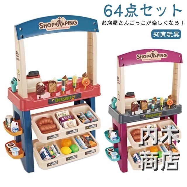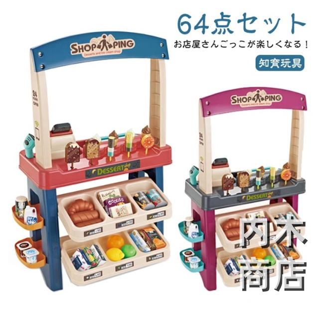 アイスクリーム屋さん ままごとセット 男の子 知育玩具 子供 レ プレゼント 食材 64点セット ごっこ遊び お店屋さんごっこ クリスマス おもちゃ 女の子