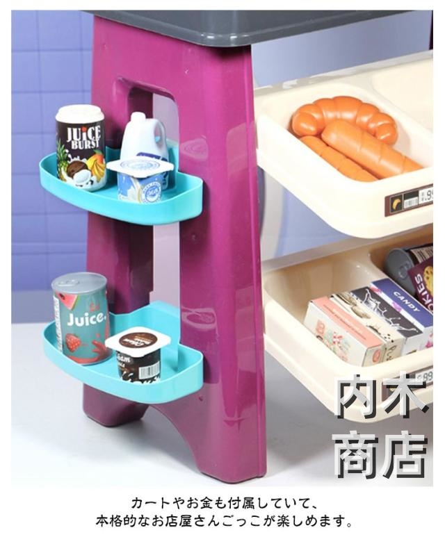 | ・お店屋さんごっこが楽しくなる! ・総アイテム数64点のボリューム満点お店屋さんごっこセットです。 ・カートやお金も付属していて、本格的なお店屋さんごっこが楽しめます。 ・本格的なレボタンを押すと反応するクレジットカードリーダーも付いているのでキャッシュレス決済も体験できます。 ・全64個という豊富なアイテム数で、届いてすぐに本格的なおままごとをお楽しみいただけます。 ・楽しく遊びながらコミュニケーション能力や創造力、社会性を身に着け、お子さまのすこやかな成長をサポートします。 ・組み立て式なので、遊ばない時はばらして収納できます。 ・プレゼントにもオススメ♪ | |