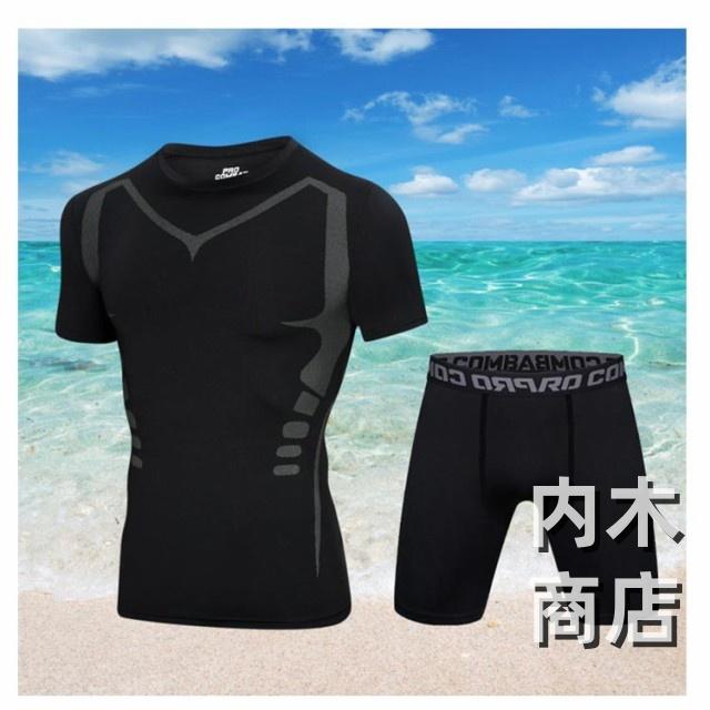 おしゃれ メンズ 軽量仕様 速乾 吸汗 SNS話題 練習用 競泳水着 上下セット 水泳 スイムウェア 日焼け防止 スポーツ サーフパンツ 半袖/長袖 海パンツ 2点セット ショートパンツ/ロングパンツ カット 水着 ジム 大人 着脱簡単 ラッシュガード