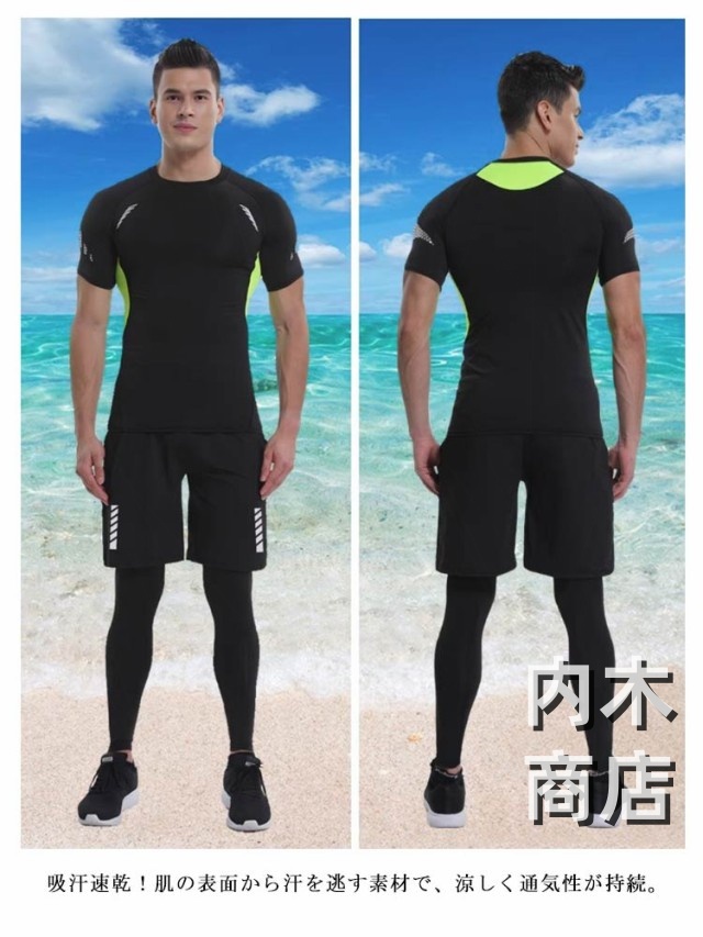 おしゃれ 水着 カット 速乾 水着 大人 メンズ 海パンツ 上下セット 2点セット ショートパンツ/ロングパンツ 吸汗 半袖/長袖 水泳 日焼け防止 スポーツ 練習用 サーフパンツ スイムウェア ジム ラッシュガード 着脱簡単 競泳水着