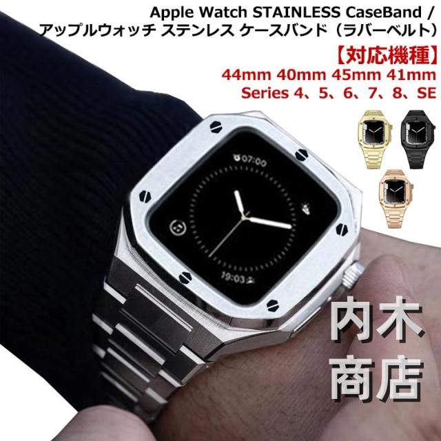 腕時計 ベルト バンド ブラック アップルウォッチ ケースバンド シルバー メンズ バンド ピンクゴールド 送料無料 ステンレスストラップ ケース 44 おしゃれ 45 高級ベルト ゴールド 一体型 ステンレス ラバー 一体型 カバー