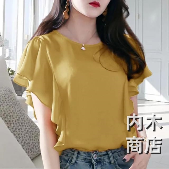 レビュー高評価商品 人気急上昇 売上急増中 多機能デザイン レディース オフィス 夏物 涼しい 結婚式 二次会 大人 カットソー 無地 夏服 トップス ブラウス フォーマル きれいめ クルーネック パーティー フリル袖 薄手 在庫わずか 半袖 可愛い