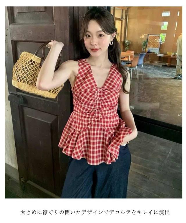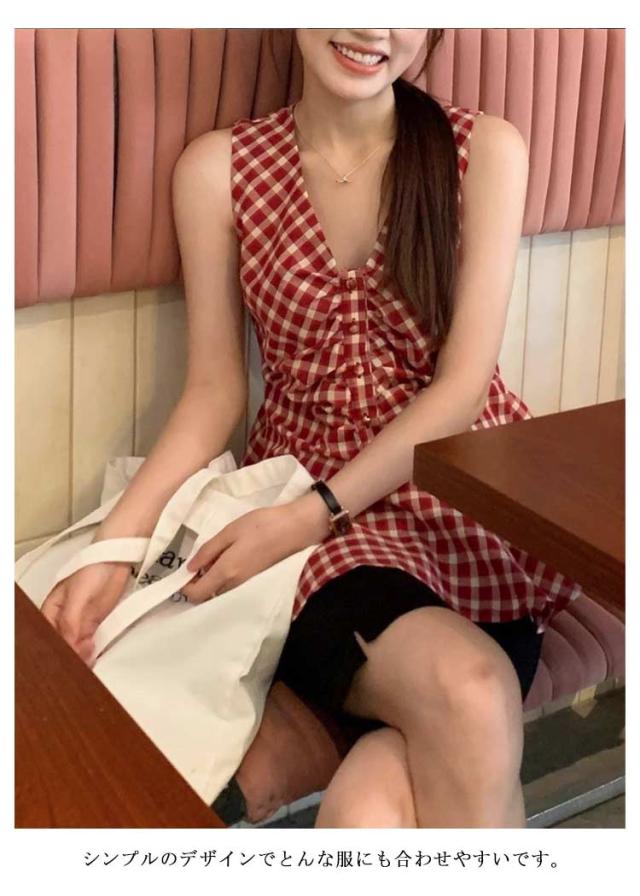 チェック柄 レイヤード 夏 タンクトップ 薄手 ノースリーブ かわいい ナチュラル トップス 重ね着 キャミソール タンク キャミ 涼しい 可愛い シンプル おしゃれ カジュアル 夏服 肌着 下着 無地 シャツ おしゃれ Vネック 大人 女性 タンクトップ 海辺 デート 部屋着