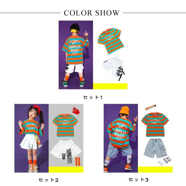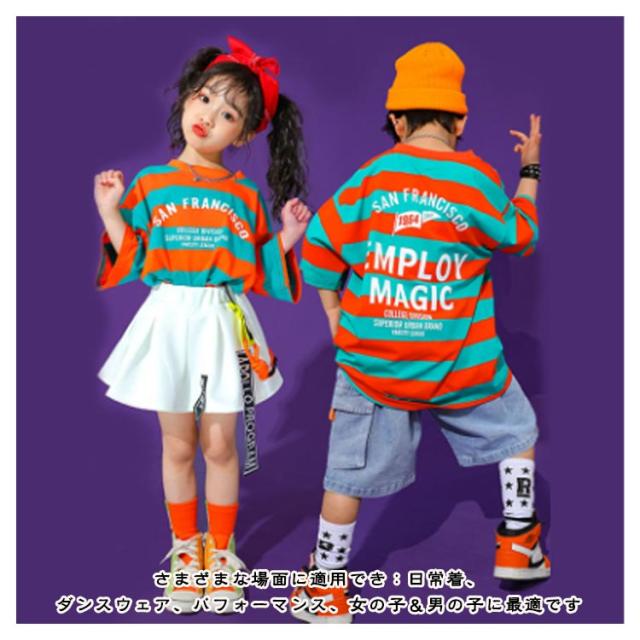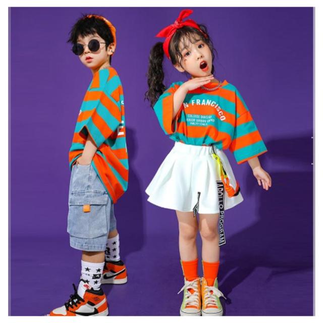 ダンス衣装 子供 男の子 tシャツ ダンス衣装 セットアップ 練習着 デニムパンツ ダンス 韓国 子供服 ショートパンツ キッズ キッズ 半袖 トップス スカート 白 女の子 ボーダー柄 ダンスウェア 体操服 チア チアガール 演出服