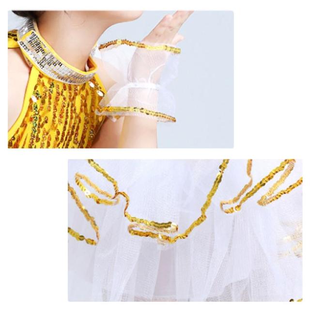 | スパンコールを施したラグジュアリーなダンス衣装。【袖カバー付き】 トップスはクロップド丈なのでお腹は見えずらい着丈感◎ スカート部分にはチュールが付いていて、とってもキュート! さまざまな場面に適用でき:日常着、ダンスウェア、パフォーマンス、女の子&男の子に最適です 春、夏、秋に着用できるので、お子様はカラフルな子供時代を過ごせます。 | |