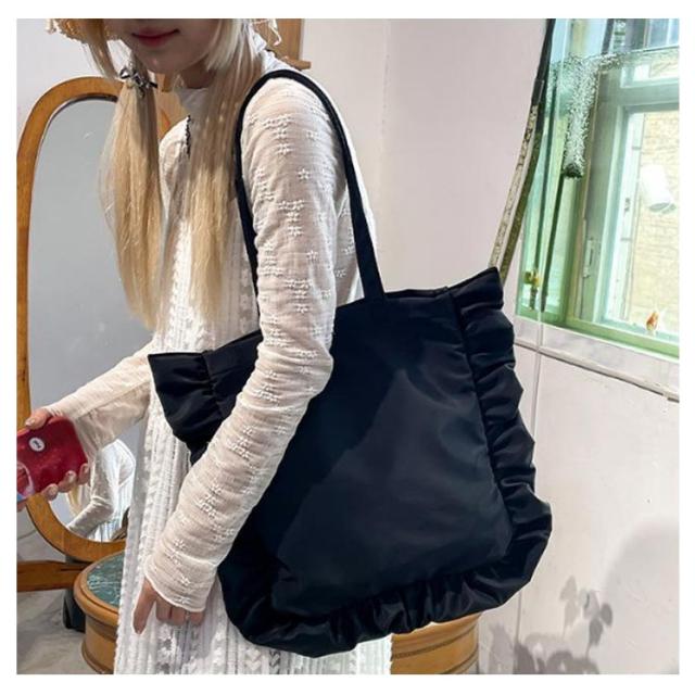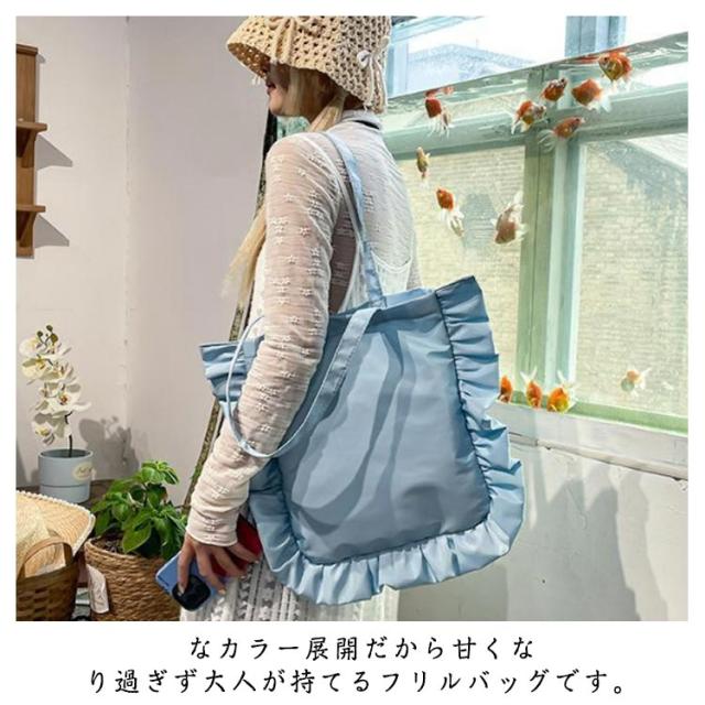 フリル フリル カバン 大容量 かばん バッグ 大きめ フリルトート 縦型 肩掛け カジュアル ナチュラル 鞄 通勤 サブバッグ フリル 通学 おしゃれ 大人可愛い ホワイト ブラック ピンク