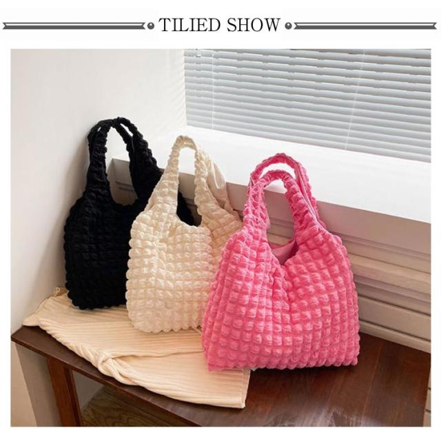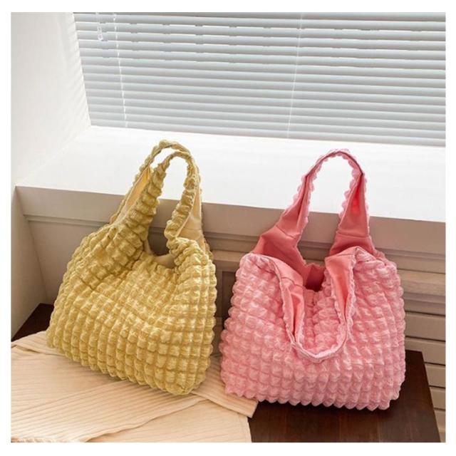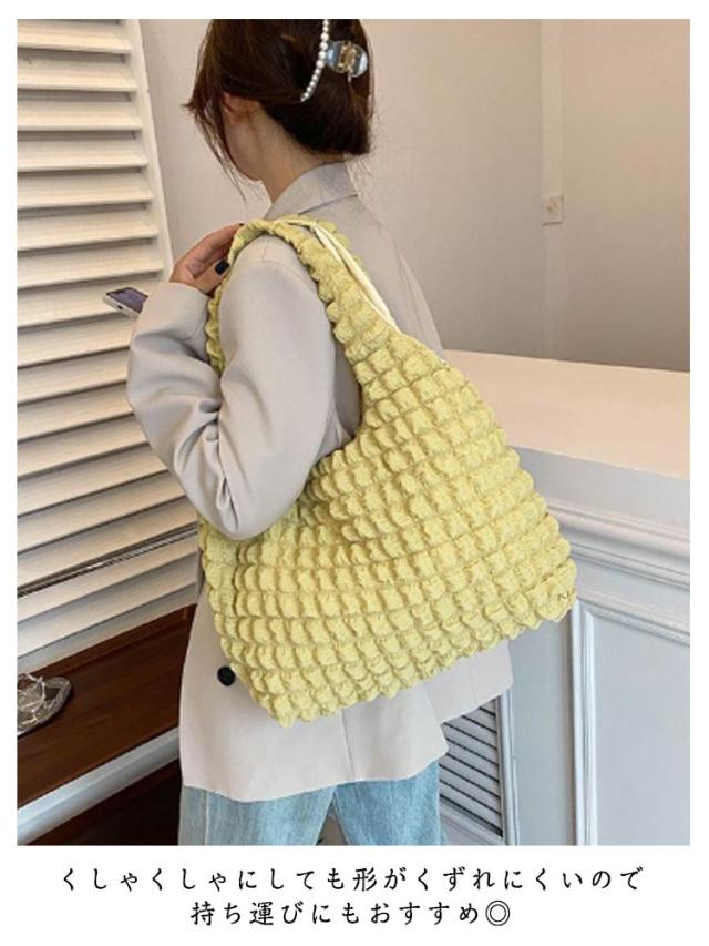 ポップコーンバッグ 軽量 かばん ポコポコ ポップコーンバッグ 多収納 かわいい トートバッグ レディース 可愛い キルティング ふわふわ ポコポコ バッグ 凸凹 マザーズバッグ 通勤バッグ 大きめ エコバッグ 大容量 ブラック アイボリー イエロー ピンク
