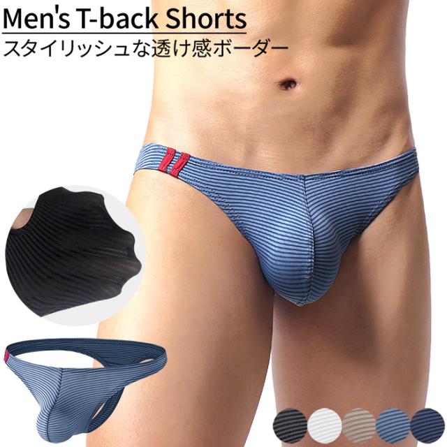 メンズ Tバック セクシー ボーダー 快適フィット 薄手 シンプル ローライズ 蒸れない 立体縫製 勝負下着 スポーツ 通気性 ストレッチ 伸縮性 黒 白 青 mt-015