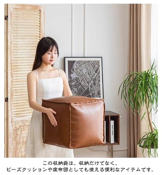 | 【多機能収納:ソファ&座布団として使える収納袋】 この収納袋は、収納だけでなく、ビーズクッションや座布団としても使える便利なアイテムです。リラックスしたい時に最適で、座り心地も抜群。お部屋のインテリアにもぴったりです。クッションとして使用することで、押入れスペースを他の収納に使うことができます。 柔らかい上質なPUレザーを採用し、撥水加工で汚れが付きにくく、濡れたタオルで拭くだけ。 | |