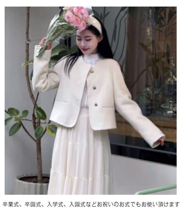 | フォーマルに最適!大人フェミニンな雰囲気のノーカラーツイードジャケット。 ボレロ風に羽織れるので、気軽にカジュアルにご着用いただけます。 シンプルな丸首と癖のないデザインは、様々なシーンで活躍します。 きちんと感のあるツイード素材だから、オフィスコーデの他にも 卒業式、卒園式、入学式、入園式などお祝いのお式でもお使い頂けます | |