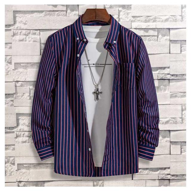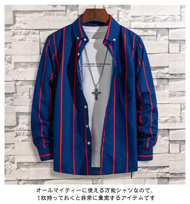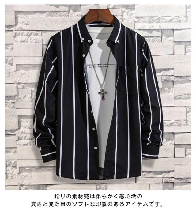 メンズ メンズシャツ 春服 長袖シャツ メンズシャツ カジュアルシャツ メンズ シャツ 立ち襟 スタンドカラー カジュアルシャツ ストライプ柄 シンプル シャツ 秋物 トップス
