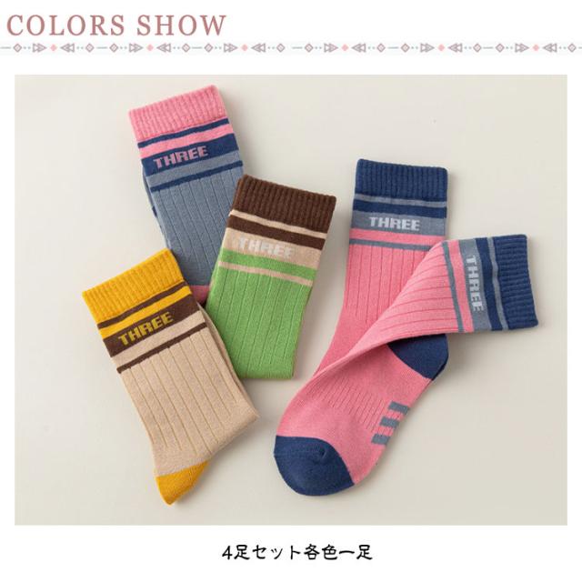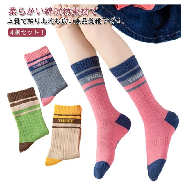 新生児 ベビー ソックス キッズソックス 靴下 子ども くつ下 ベビーソックス ロングソックス 4足セット 女の子 靴下 男の子 ハイソックス 子供 キッズ靴下 ベビー靴下 幼稚園 ミドル丈 保育園 夏 春 クルー丈 秋 冬 運動会 通園 通学 入学準備