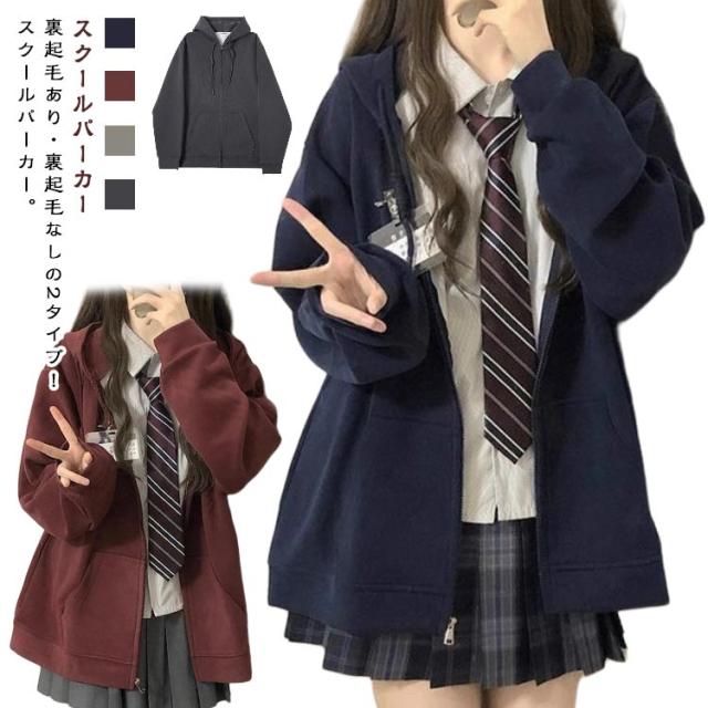 秋 長袖 スクールパーカー 中学生 春 高校生 春服 トップス スクール 裏起毛あし スクールパーカー 女子 学生パーカー レディース 学生服 パーカー 裏起毛なし 秋服 ゆったり カジュアル シンプル 通学 学生 ガールズ アウター
