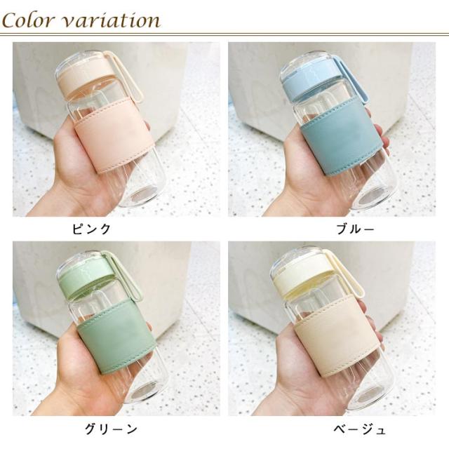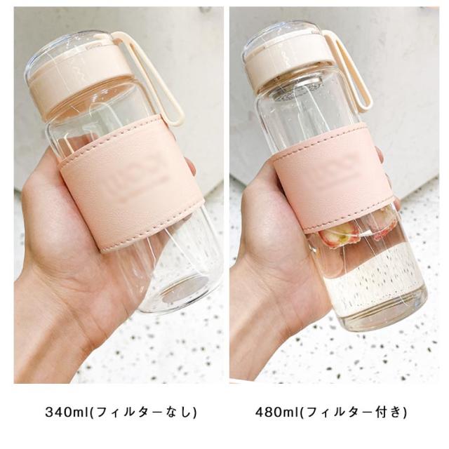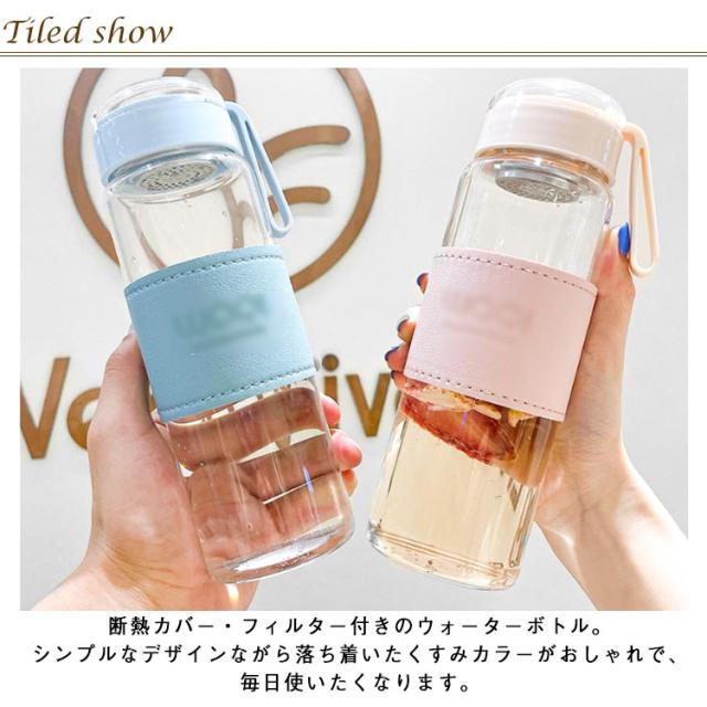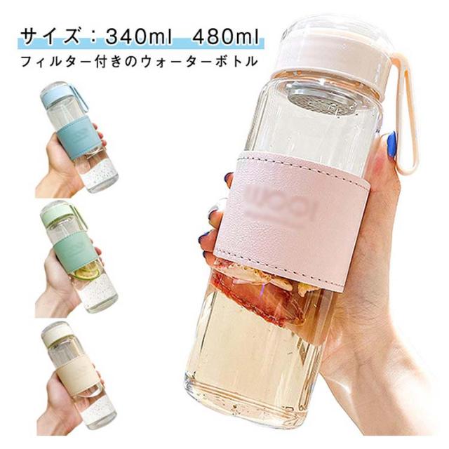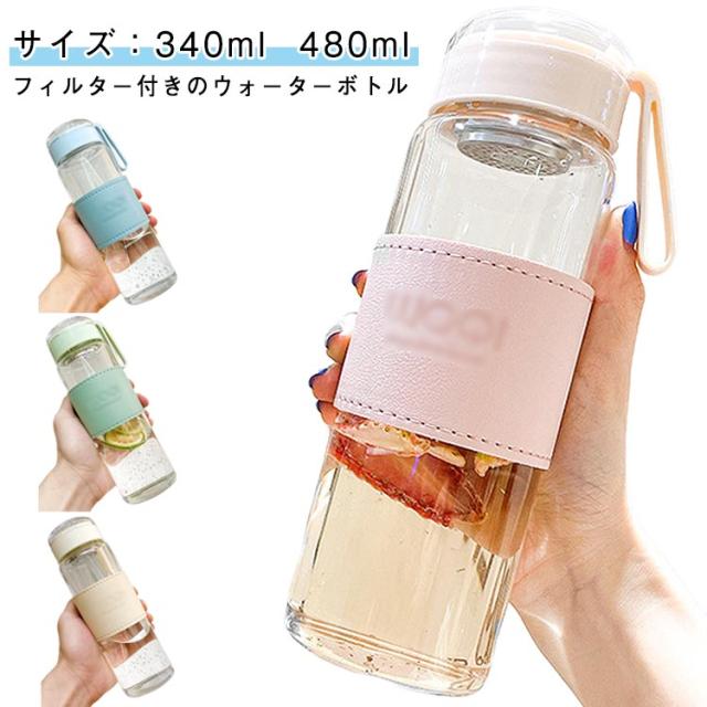 ウォーターボトル ボトル 水 耐冷 シンプル 480ml 耐熱 340ml 大容量 ガラス ガラス 断熱カバー付き フィルター付き ボトル おしゃれ ボトル 直飲み ドリンクボトル 可愛い お茶 漏れ防止 軽量 持ち運び 仕事 水筒 オフィス スポーツ 男女兼用