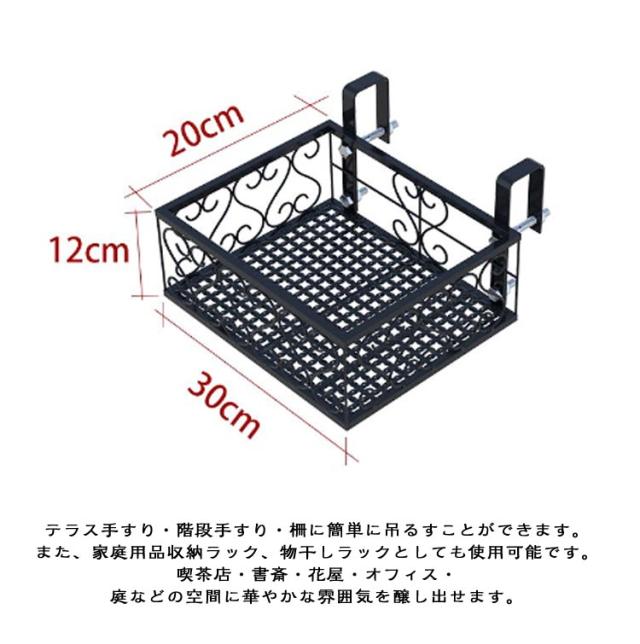 | 【13サイズ】 【フラワースタンド】 フックタイプから、サッと掛けて使える人気のフラワースタンドです。 お金属製フレームは耐久性があり、シンプルな構造ですが、優れた耐荷性で、花満開でも、ちゃんと植木鉢を支えます。 プランタースタンドの底には増強した穴細い金属メッシュ、植物の成長にも優しい通気性良い園芸ラックです。 鉢植えの植物を置くことができ、ベランダなど限られたスペースで小ガーデンを作るに最適です。 テラス手すり・階段手すり・柵に簡単に吊るすことができます。 また、家庭用品収納ラック、物干しラックとしても使用可能です。 喫茶店・書斎・花屋・オフィス・庭などの空間に華やかな雰囲気を醸し出せます。 | |