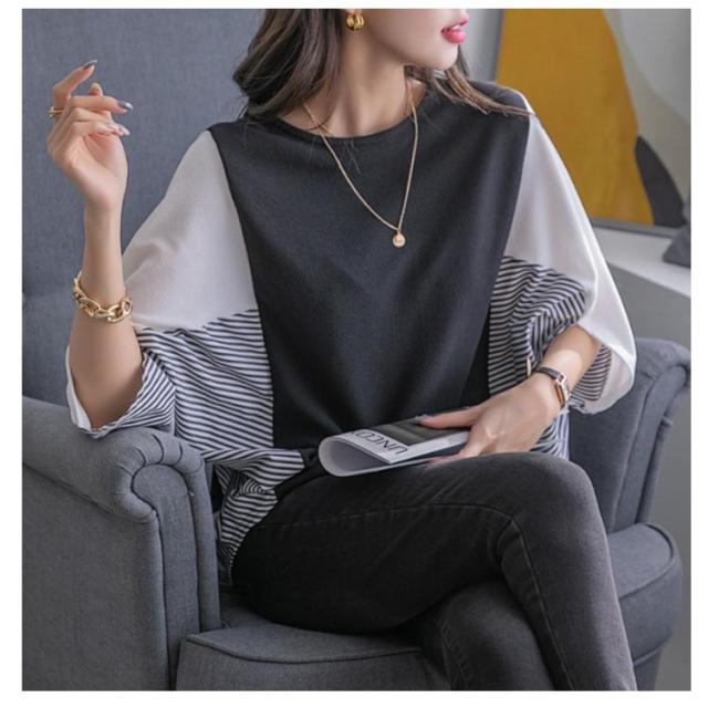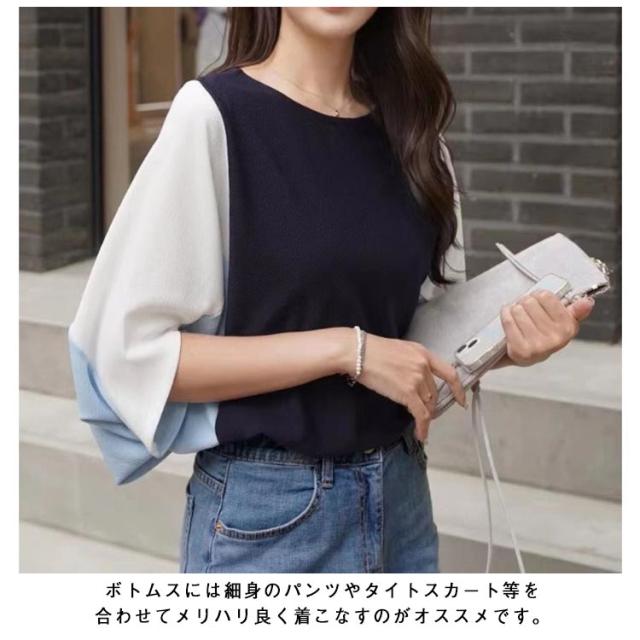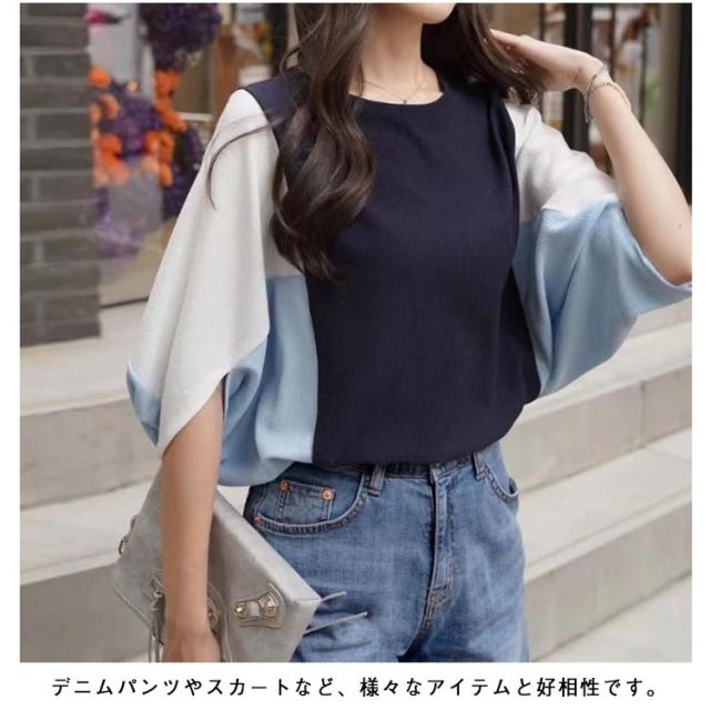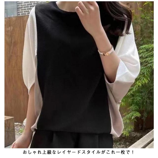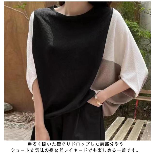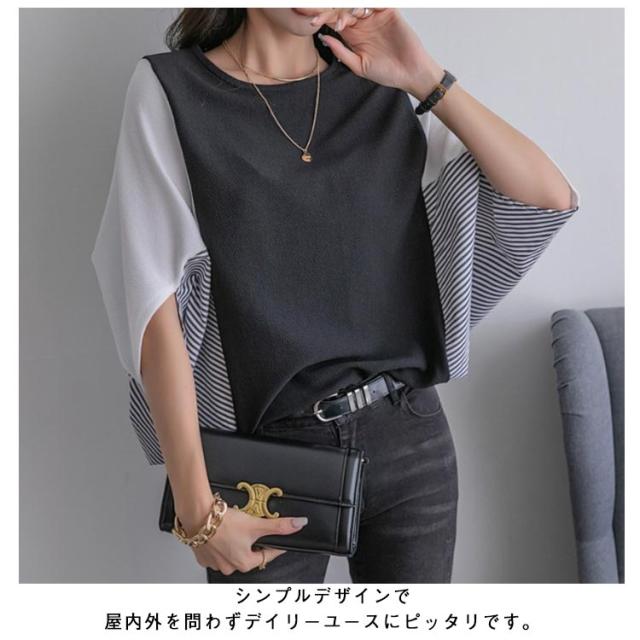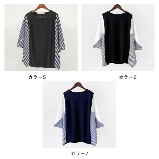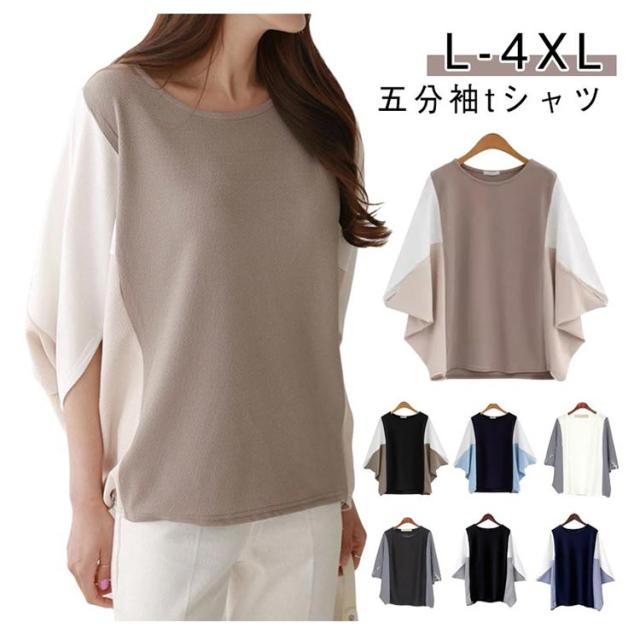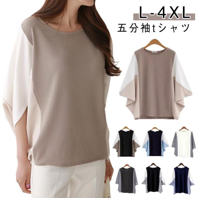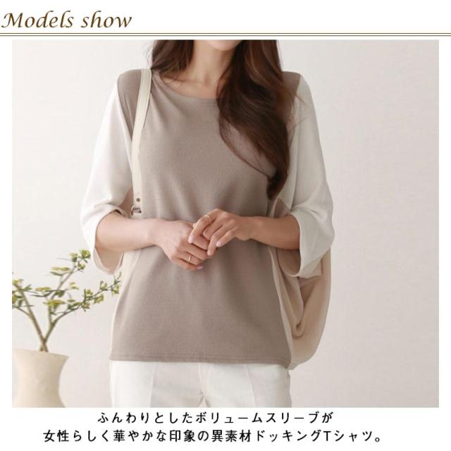 ドルマンスリーブ ドルマンスリーブ ボリューム袖 tシャツ バルーン袖 五分袖 切り替え Tシャツ スウェット 大きいサイズ きれいめ かわいい プルオーバー おしゃれ ゆったり レディース 体型カバー 春 夏