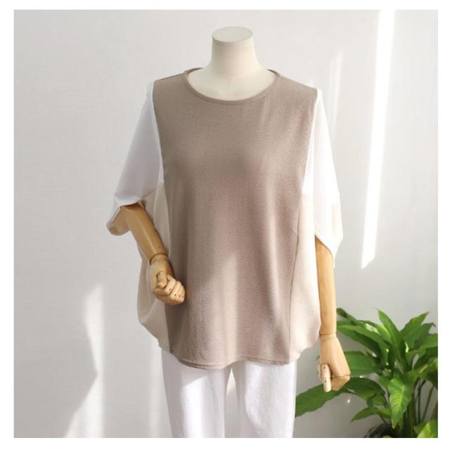 | ふんわりとしたボリュームスリーブが女性らしく華やかな印象の異素材ドッキングTシャツ。 身体のラインを拾わないオーバーシルエットでノンストレスな着心地。 ドッキングデザインが、1枚でお洒落さをアップしてくれます。 ゆるく開いた襟ぐりドロップした肩部分ややショート丈気味の裾などレイヤードでも楽しめる一着です。 おしゃれ上級なレイヤードスタイルがこれ一枚で! デニムパンツやスカートなど、様々なアイテムと好相性です。 ボトムスには細身のパンツやタイトスカート等を合わせてメリハリ良く着こなすのがオススメです。 シンプルデザインで屋内外を問わずデイリーユースにピッタリです。 | |