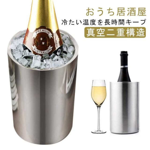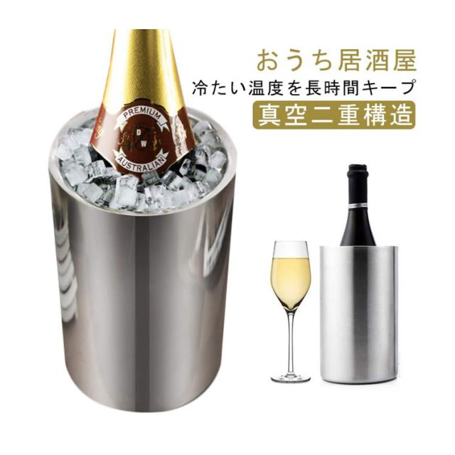 日本酒 アイスバケット ワインクーラー ステンレス 真空断熱 保冷 氷 1本用 保冷 アイスペール バケツ ホームパーティー 結露防止 保温 エコ シャンパン クーラー ワイン ワインクーラー 宅飲み クリスマス 二重構造 結婚式 アウトドア キャンプ
