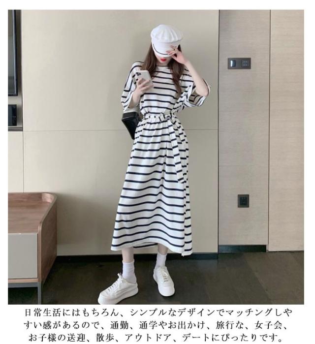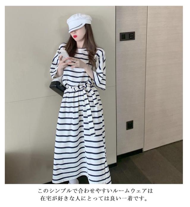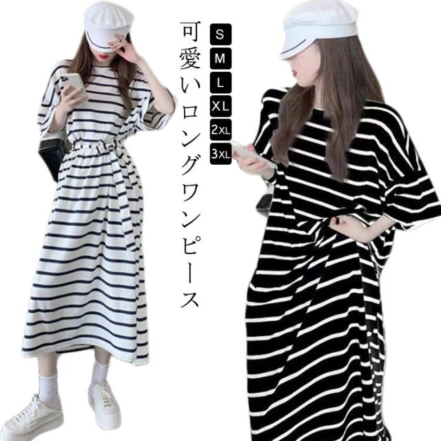 半袖 ワンピース 夏用 部屋着 ボーダー柄 可愛い インナー ナイトウェア ロング 普段着 通勤 通学 アウトドア ゆったり 大きいサイズ 春夏 ワンピース リラックス 薄手 シンプル 無地 カットソー ルームウエア レディース ランジェリー かわいい おしゃれ