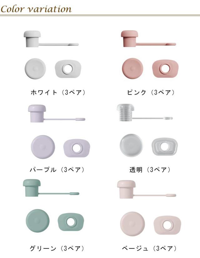 | 色 | ホワイト(3ペア) ピンク(3ペア) パープル(3ペア) 透明(3ペア) グリーン(3ペア) ベージュ(3ペア) |