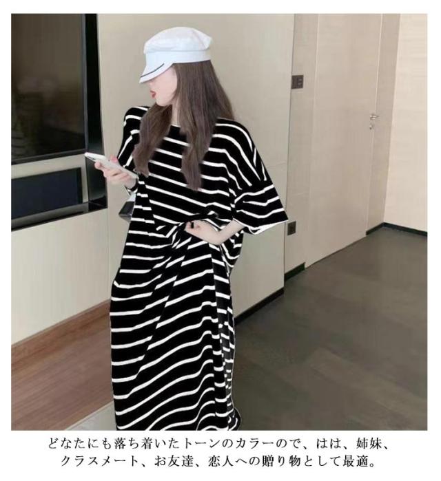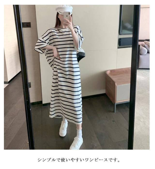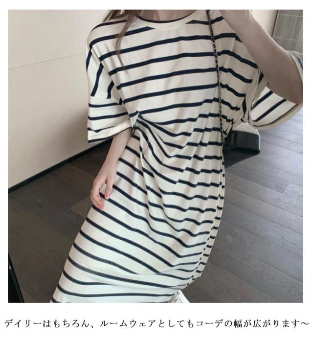 半袖 薄手 ゆったり ワンピース レディース 無地 ワンピース 可愛い 部屋着 ボーダー柄 普段着 通学 ロング ワンピース 大きいサイズ 春夏 インナー リラックス 夏用 シンプル アウトドア カットソー ルームウエア ナイトウェア ランジェリー かわいい おしゃれ