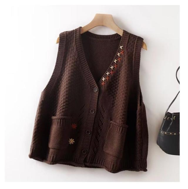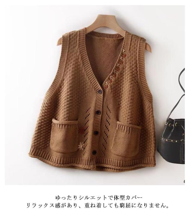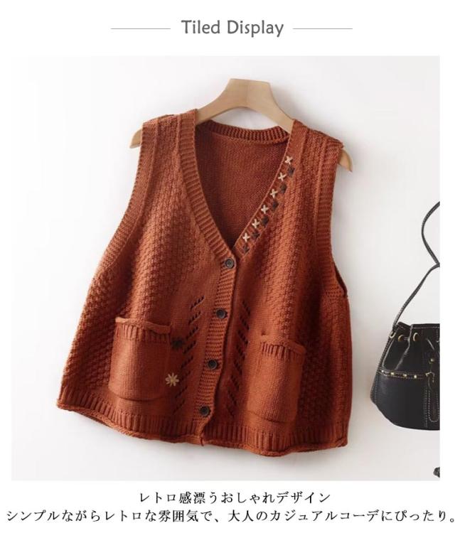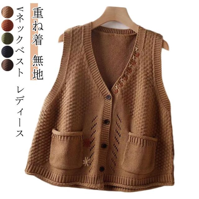 ノースリーブ Vネック 春 レイヤード ニットベスト 前開き ベスト 秋 ニット セーター トップス カジュアル 重ね着 ニットベスト ジレ ベスト おしゃれ ゆったり