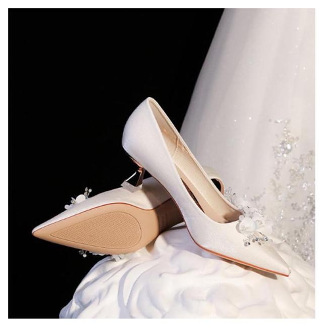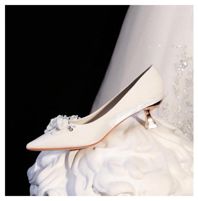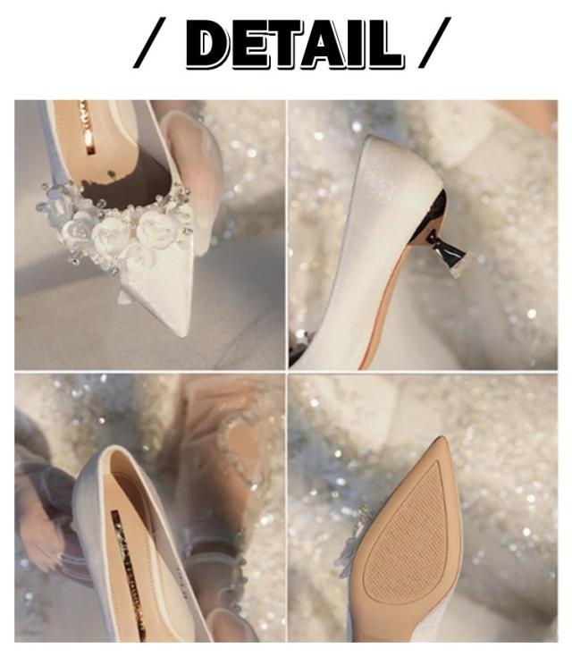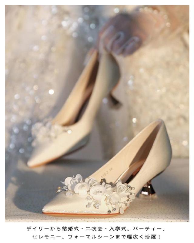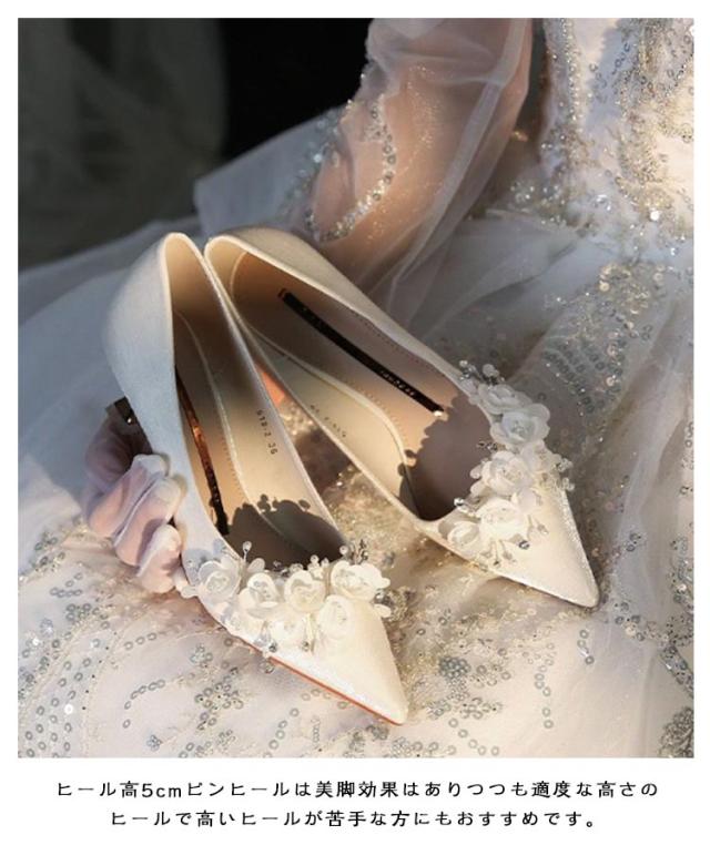 ポインテッドトゥ キラキラ 疲れない ブライダルシューズ パンプス 優雅 5cmヒール お花付き 演奏会 結婚式 ドレスシューズ エレガント 韓国風 ウエディング シューズ 靴 花嫁 ウエディングシューズ 痛くない ローヒール 挙式 披露宴 発表会 ブライダルシューズ パーティー