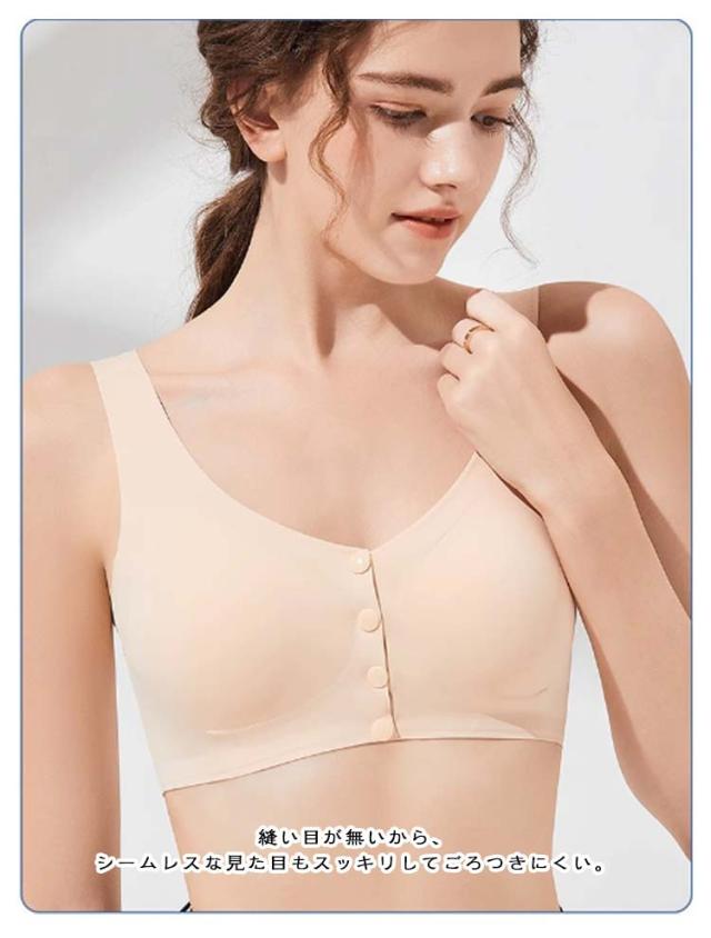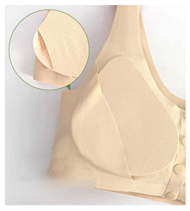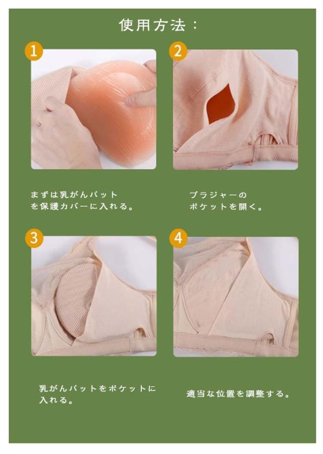 | 【乳がん用前開きブラ】 【乳がん用パッドあり】 スナップボタンだから留め外しが簡単。スナップでしっかり留まり、ズレを軽減します。 縫い目が無いから、シームレスな見た目もスッキリしてごろつきにくい。 ストレッチ性抜群で締め付け感が少なくバスト全体をやさしくホールド。 高い通気性で、汗をかいてもさらりと軽やかな着心地です。 使用方法: まずは乳がんパットを保護カバーに入れる。 ブラジャーのポケットを開く。 乳がんパットをポケットに入れる。 適当な位置を調整する。 | |
