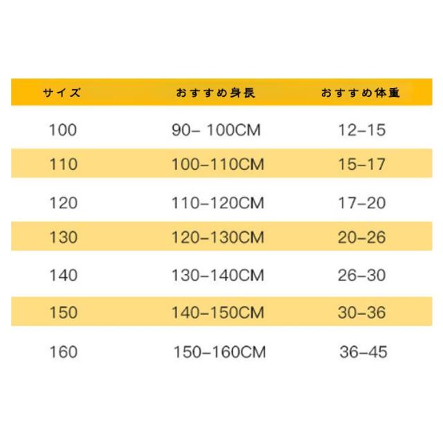 | サイズについての説明 | 100 110 120 130 140 150 160 |