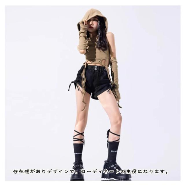 ダンス衣装 女の子 デニム セットアップ 韓国 ワイドパンツ ヒップホップ ジャズダンス キッズダンス衣装 チア チアガール k-pop キッズ 子供服 トップス ヘソ出し フード付き スカート パンツ 砂色 グレー jazz hiphop